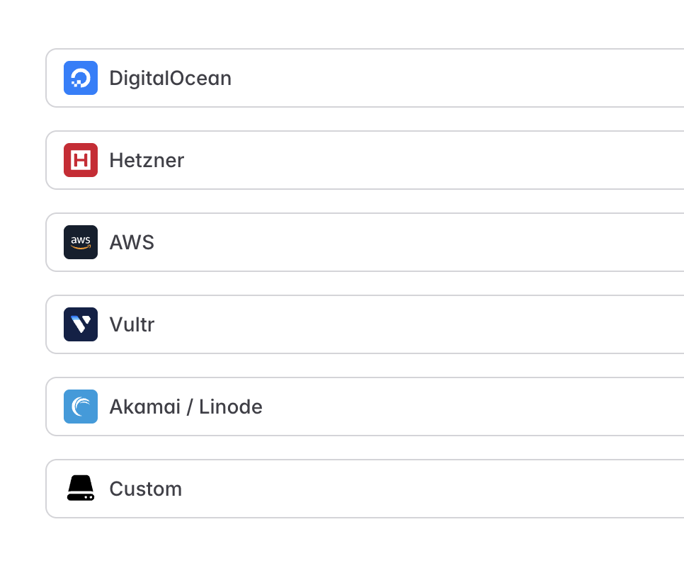 Choose the best hosting provider for you. Optimize for cost, region availability, or ecosystems.
